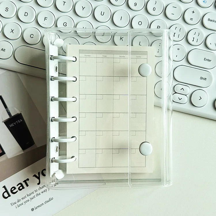 Featuring a unique transparent double buckle design, this diary exudes elegance while offering practicality. Its detachable goo book design allows you to customize and rearrange your pages effortlessly, ensuring that your thoughts flow freely without constraints. Designed with the modern girl's heart in mind, this 6-hole loose-leaf handbook provides ample space for your ideas to flourish.