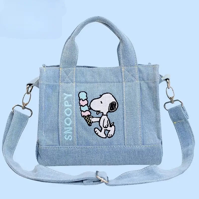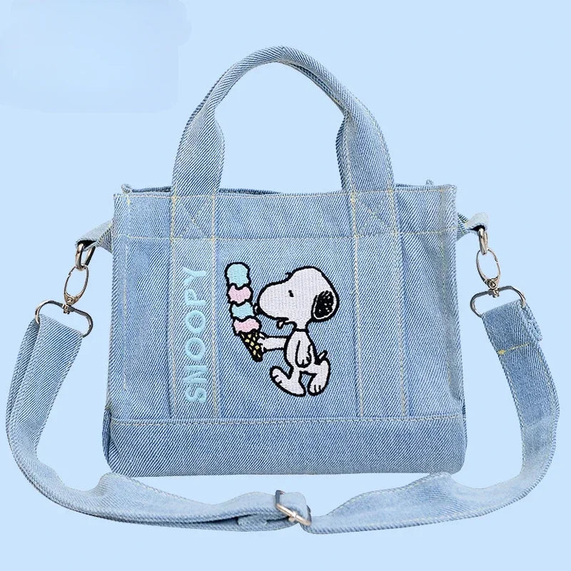 Add a playful touch of charm and effortless style to your everyday look with this adorable Snoopy Denim Bag.