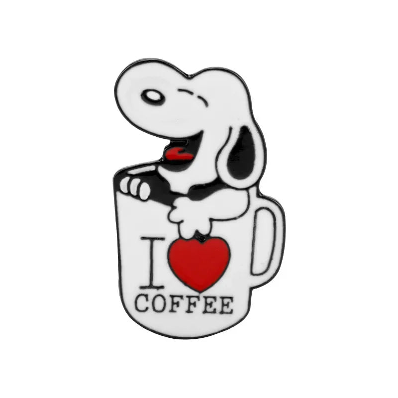 Add a touch of playful charm and personality to your outfit with the Snoopy I Love Coffee Brooch.